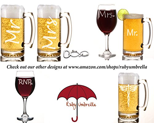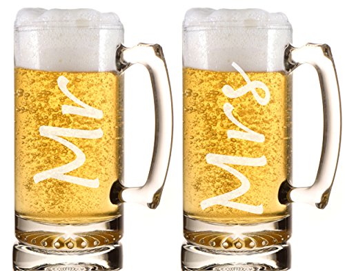 RUBY UMBRELLA MR. AND MRS. 27 OUNCE BEER MUG GIFT SET, GREAT FOR WEDDINGS, ENGAGEMENTS, COUPLE GIFTS, ANNIVERSARIES, CHRISTMAS AND MORE!