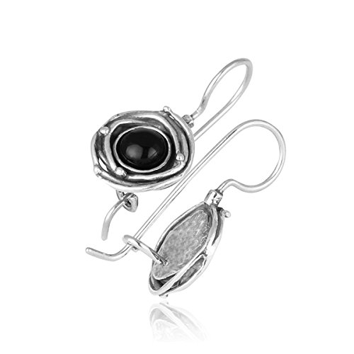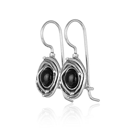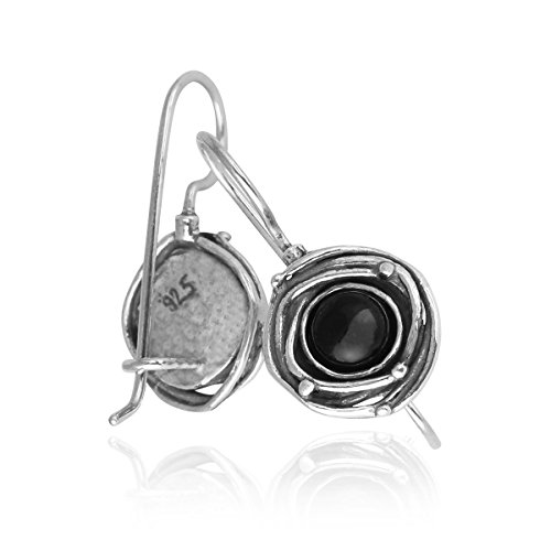 Unique artisan design black Onyx gemstone Sterling Silver earrings.