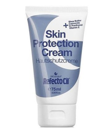 Refectocil Skin Protection Cream protects skin during tinting with vitamins E and D. Helps maintain softness and inhibit water penetration. Also great for hands and body. 2.53 oz.