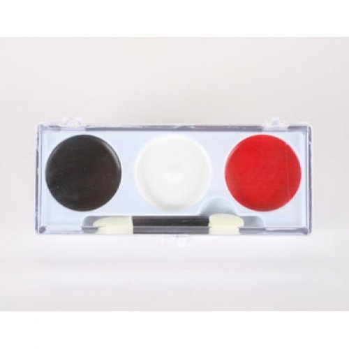 -. Feature : Mehron clown makeup palette / 3-colors (Black, Red and White) / Each container is 0.25 oz in size / Comes with convenient flip-top box / Makeup must be "set" with Colorset powder