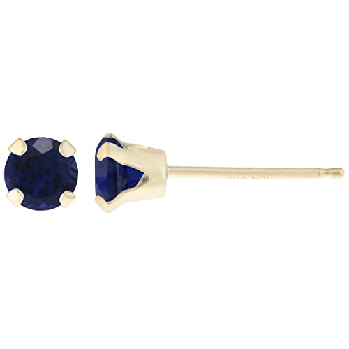 In gleaming 14K yellow gold, these genuine sapphire stud earrings are a classic, rendering a contemporary yet feminine look. They feature a round 5MM sapphire. Sapphire is a September birthstone. Perfect for Virgo and Libra