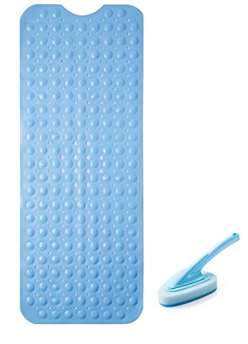 Anti-Slip Bath and Shower Mat with Powerful Suction Cups Mildew Resistant & Machine Washable by Somine, Extra Large(39’’X16’’) , Includes A Cleaning Brush