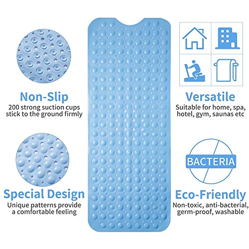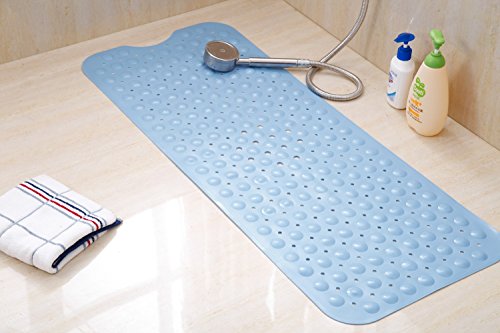 - ★ NO MOLD OR BACTERIA- The non-slip bath mat is anti-bacterial and has mildew-resistant properties which keep mildew away effectively. To avoid the growth of mold, please remove the mat from the tub after each use. Large Size: 39’’ X 16’’ (100cm X 40cm) in rectangle shape, color is light blue.