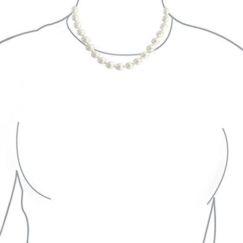 With a crystal covered screw clasp that can be worn in front or in the back, this 10mm white simulated shell pearl necklace is 16in of simple rhodium sophistication. Easy to match, dress up, dress down, or layer this is the perfect rhodium plated gift.