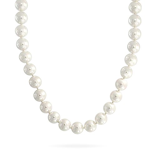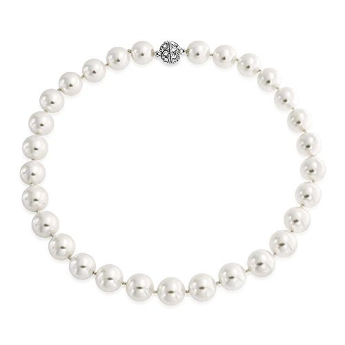 If delicate pearls are not for you, then this pearl jewelry is. Our white Simulated Pearl necklace features shining 10mm pearls that whose size makes them modern and noticeable yet traditionally stylish. Stand out even more with the Crystal bracelet clasp, which is set with crystals and will keep you glittering all night. This simulated white pearl necklace can be worn at every glamorous formal even you go to, including your own wedding. Use this to add a little sparkle and shine to your own ensemble or to your beautiful bridesmaids as wedding jewelry. Order our beautiful simulated pearl strand necklace today for a look that never goes out of style.Feature