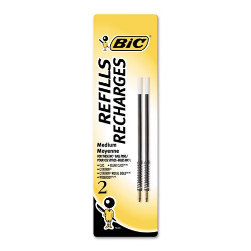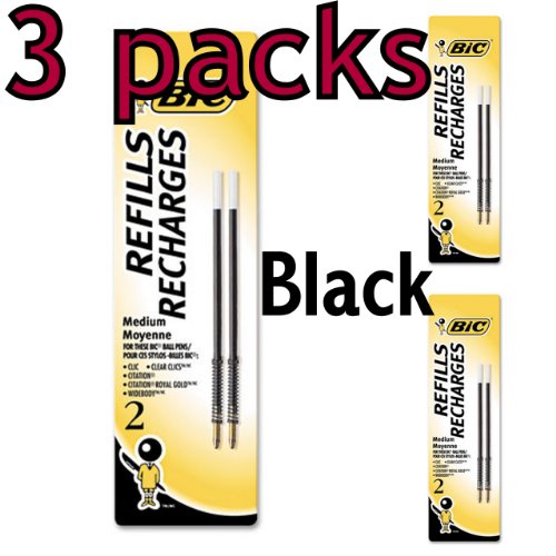 Value Pack of 6 BIC Standard Refills - Medium Point 1.0mm fits Wide Body, Velocity, XXL, Pro+, ReAction and AI, 6 total refills, Black (MRC21-Blk)