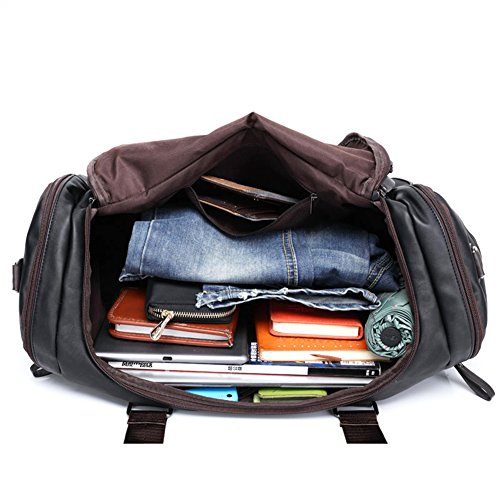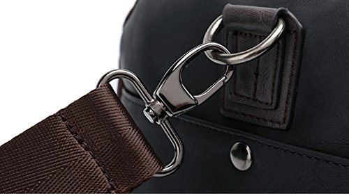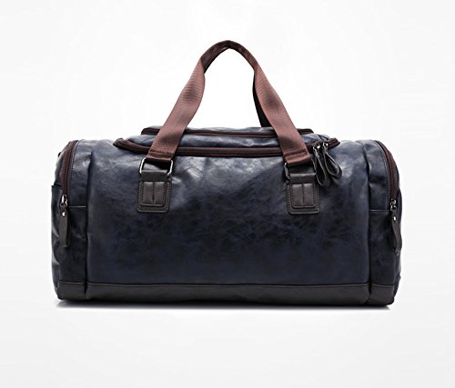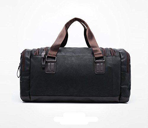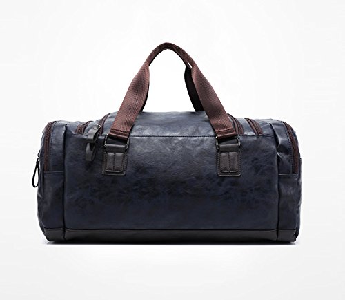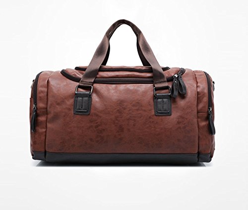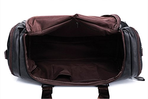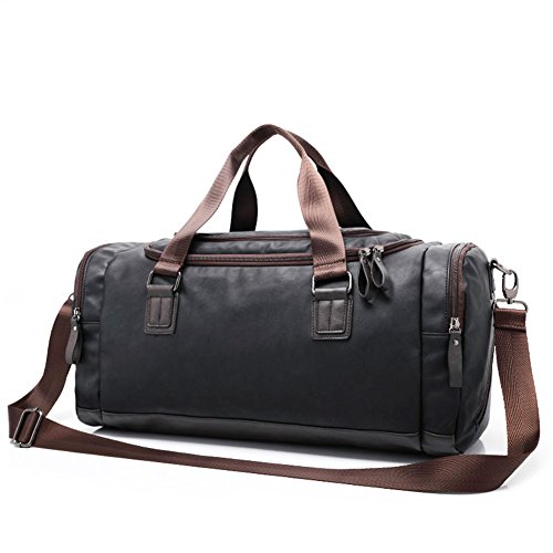 -. Feature : Material: Durable PU Leather. / Leather duffel bag with zippered clamshell opening, and dual zippered side compartments. / Adjustable and removable cross-body shoulder strap. / Interior: zipper pocket, cell phone pocket. Fabric lining. / Dimensions: 16.9'' L, 7.1'' W, 9.8'' H.
