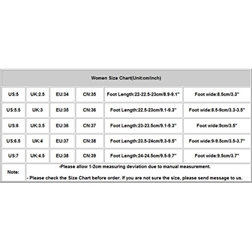 Women Size Chart(Unit:cm/inch) US:5 UK:2.5 EU:34 CN:35 Foot Length:22-22.5cm/8.7-8.9" Foot wide:8.5cm/3.3" US:5.5 UK:3 EU:35 CN:36 Foot Length:22.5-23cm/8.9-9.1" Foot wide:8.5-9cm/3.3-3.5" US:6 UK:3.5 EU:36 CN:37 Foot Length:23-23.5cm/9.1-9.3" Foot wide:9cm/3.5" US:6.5 UK:4 EU:37 CN:38 Foot Length:23.5-24cm/9.3-9.5" Foot wide:9-9.5cm/3.5-3.7" US:7 UK:4.5 EU:38 CN:39 Foot Length:24-24.5cm/9.5-9.7" Foot wide:9.5cm/3.7" 0