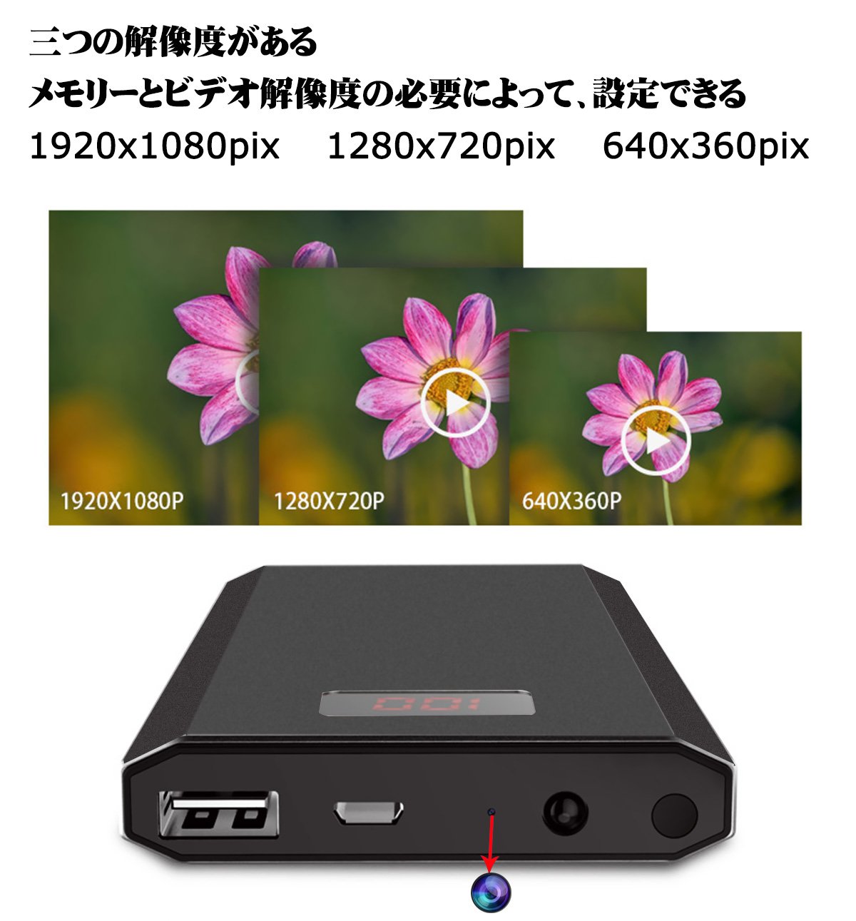 ● Supports crime prevention and surveillance with external power supply + moving object detection + repeat recording support.