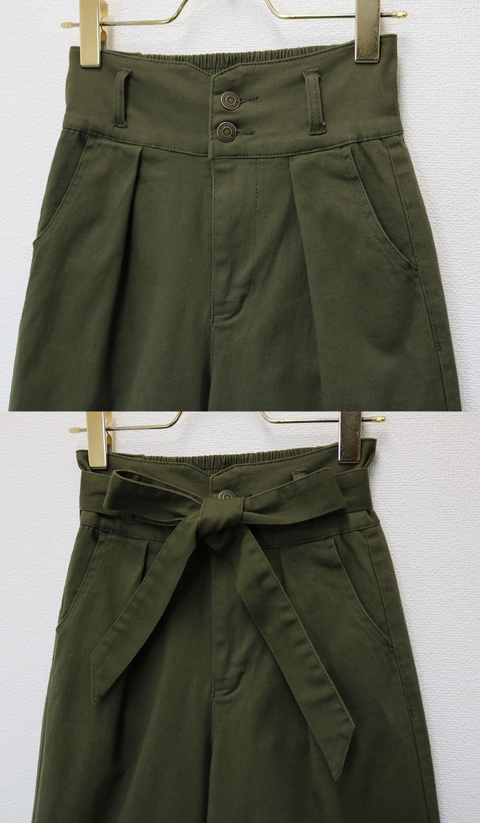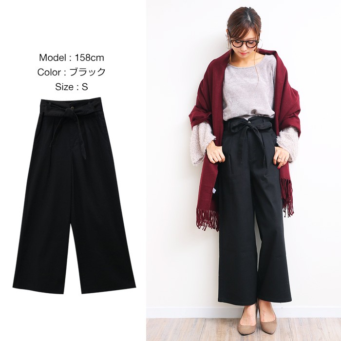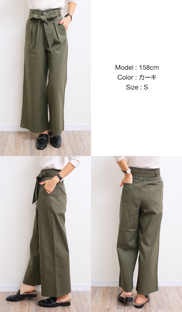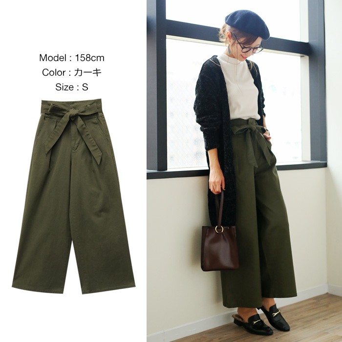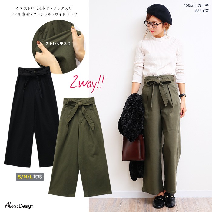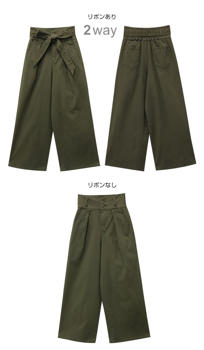 ウエストりぼん付きで2wayではけるツイル素材・ワイドパンツ♪