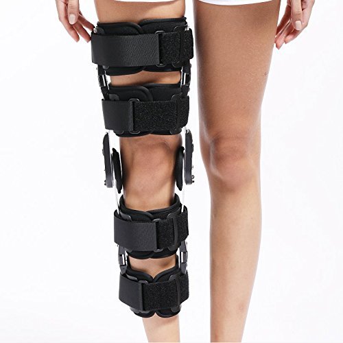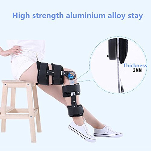 -. Feature : POST SURGERY KNEE SUPPORT: If you suffered a torn anterior cruciate ligament or in-patellar fracture, you need a brace that keeps your leg safe and immobile; this knee brace gives you premium support. / ADJUSTABLE MOBILITY: As you progress through your recovery, you'll need more or less extension and flexion capabilities. The bilateral range-of-motion settings can be adjusted between 0° - 120° of flexion and 0° - 90° extension. / WORKS ON EITHER LEG: Not only is our brace one size fits most and designed for both men and women, it can work with either your left or right leg. / EXTENDED WEAR: Our brace is comfortable enough to be worn during the day and at night while you're sleeping. Wear it as much as you like to balance your comfort and recovery levels. / High-duty military aluminum alloy support is ductility and can be adjusted as individual demand.
