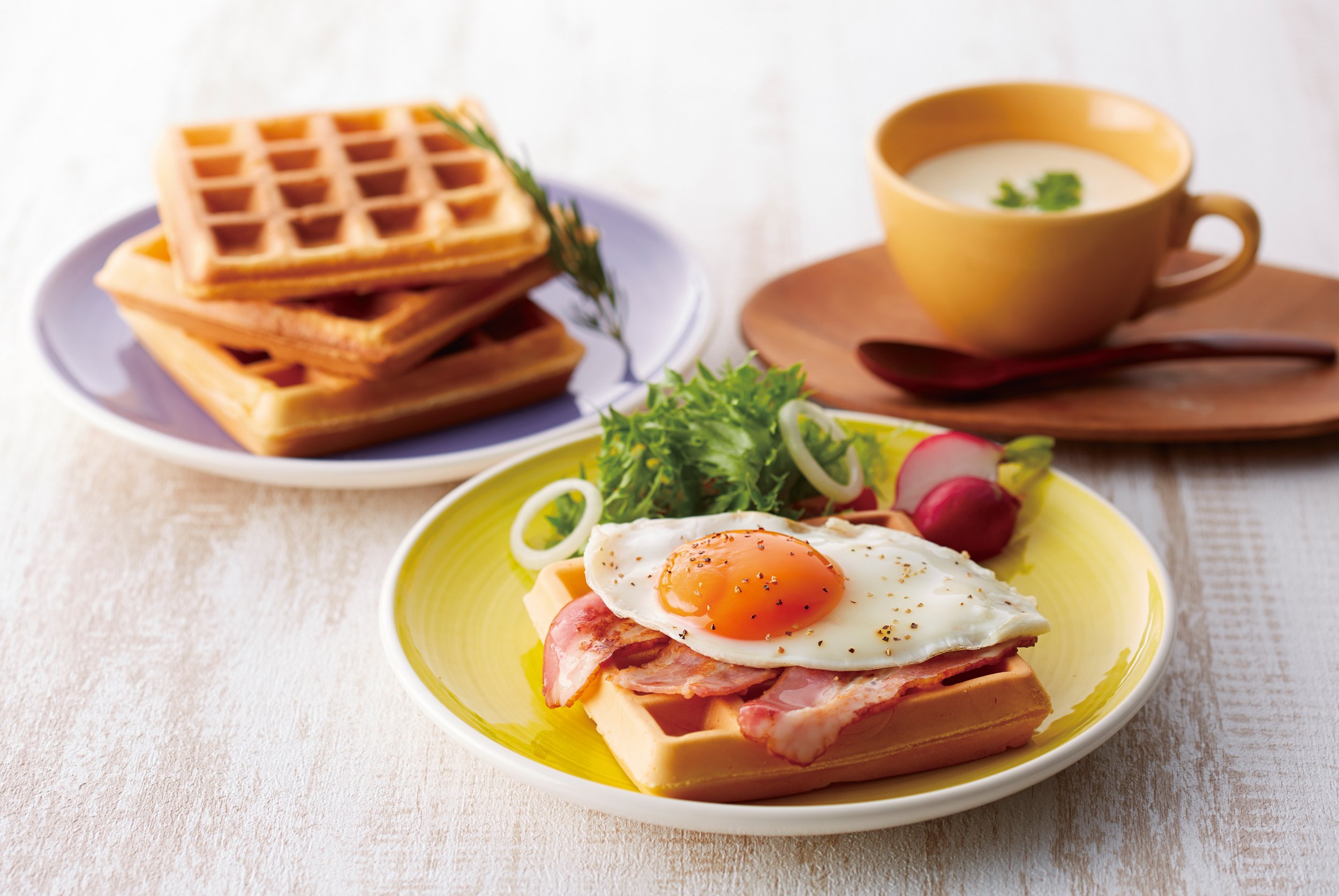 Just by changing the dough, you can bake a waffle of various texture.
