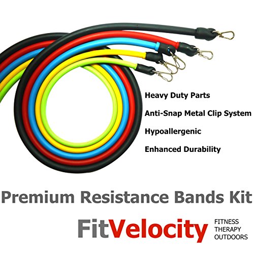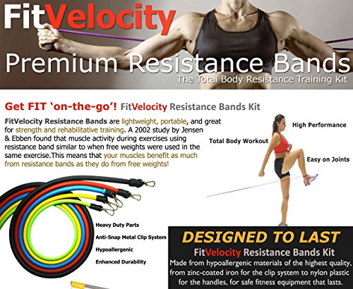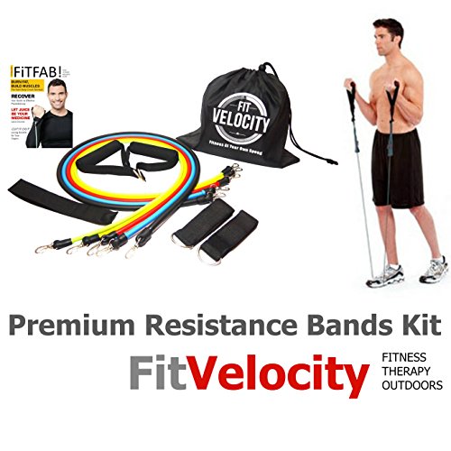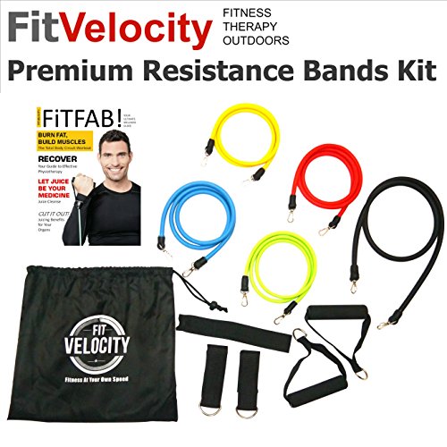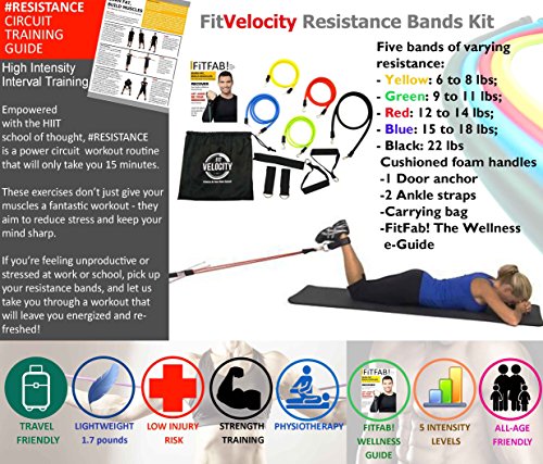 FIT VELOCITY PREMIUM RESISTANCE EXERCISE BANDS. HEAVY DUTY. HYPOALLERGENIC. PERFECT FOR FULL BODY WORKOUT, HIIT,P90X,YOGA,CROSSFIT,PILATES.EASY ON JOINTS.EXCLUSIVE WELLNESS GUIDE INCLUDING CIRCUIT TRAINING & PHYSIOTHERAPY. 100% SATISFACTION GUARANTEED!