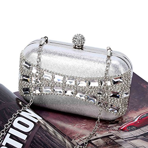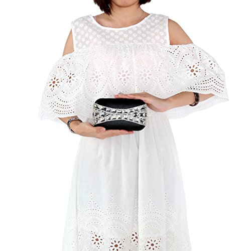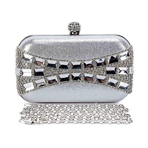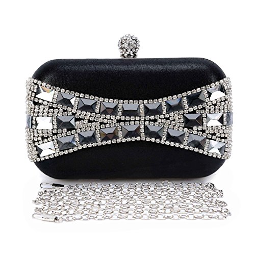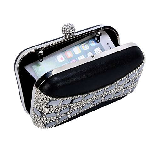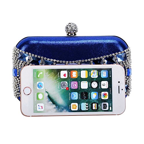 Features Size: 6.3"(L)*2.17"(W)*3.94"(H). FRABIC: The glamrous clutch handbags made of crystal and satin,very stylish. Occasions: Wedding/prom/party/black tie/show/cocktail/night out. Fit enough: Cell phone/small wallet/mirror/lipstick/makeups/cash/credit card/car keys. Package Included: 1 x Pearl Evening Clutches Bags 1 x 47.24" Removable Chain Notes: