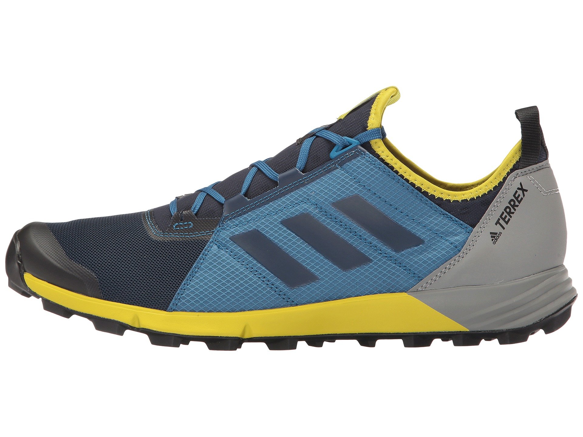 | Product Information SKU: #8809270Hug the singletrack in the light and agile adidas? Outdoor Terrex Agravic Speed trail-running shoe!Predecessor: None. Support Type: Neutral. Cushioning: Lightweight, flexible response. Surface: Trail.Differential: Not provided. Breathable mesh, textile, and synthetic upper materials. Lace-up closure. Heel pull loop. Bootie construction. Lightly padded tongue and collar. Comfortable textile lining offers a great in-shoe feel. Molded foam insole. Lightweight EVA midsole. Continental? rubber outsole delivers reliable grip and traction. Imported. Product measurements were taken using size 11, width D - Medium. Please note that measurements may vary by size.Weight of footwear is based on a single item, not a pair.Measurements: Weight: 8 oz |