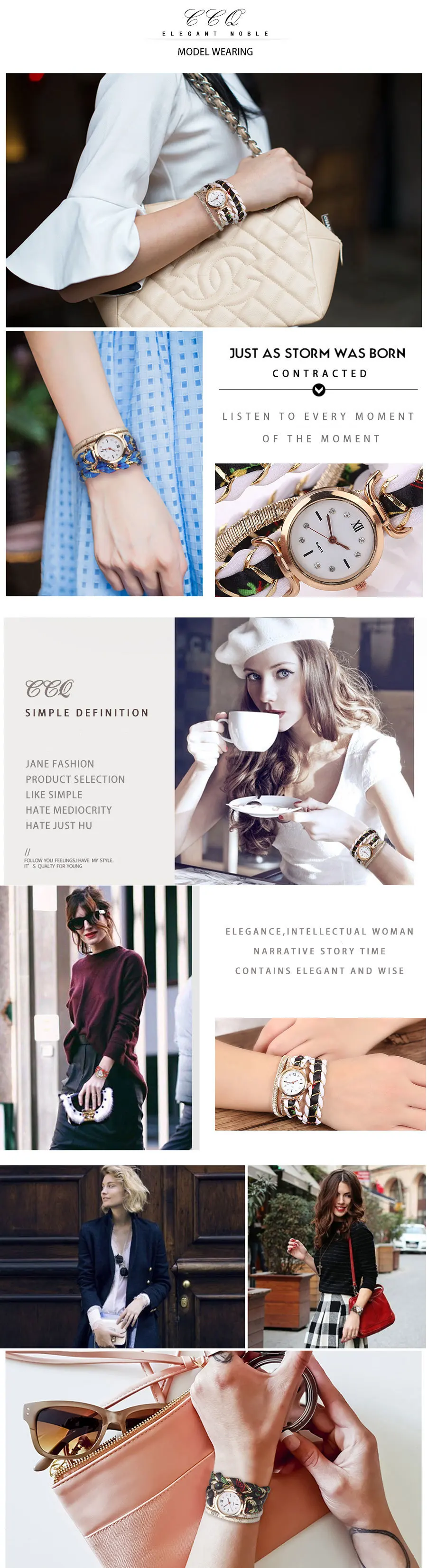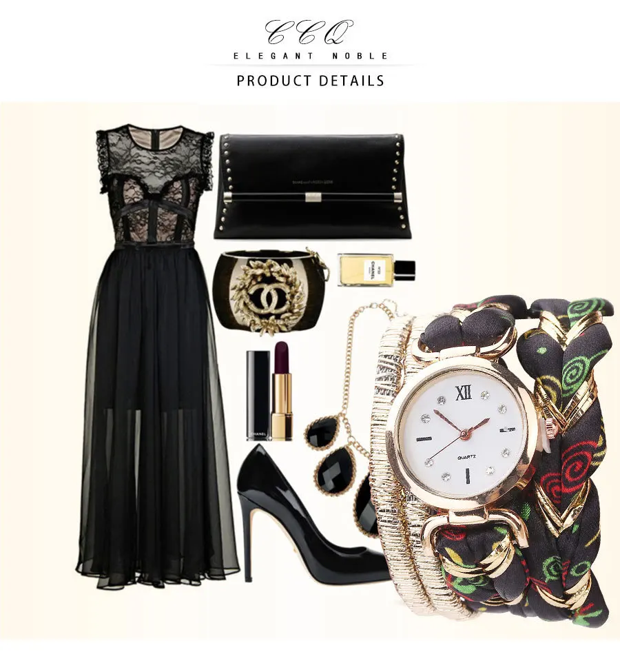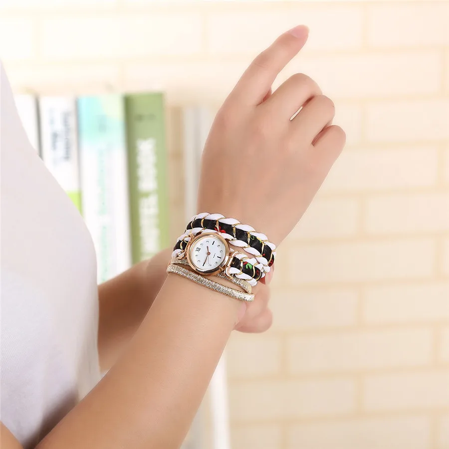 | [해외] CCQ 패션 여성 라인 석 쿼츠 손목 꼰 권선 가죽 밴드 여성 빈티지 드레스 팔찌 시계 드롭 배송 |