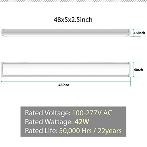 - 50,000 Hours Rated Lifespan. These lights are made of top quality material that are built to last more than 50,000hours/22years. Uses only 42-Watt of power, saving 62% over fluorescent. Never replace a bulb again. No flickering, no inadequate lighting, durable and safe.