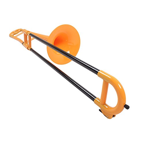 Studio : Zhengzhou Aucs Co.,Ltd. Publisher : Zhengzhou Aucs Co.,Ltd. Product Description Yellow Bb Tenor Plastic Trombones: Available in 7 bright colours and 4 metallic finishes High gloss appearance Contemporary brace styling Made from toughened ABS plastic - no dents Damage resistant finish - no scratches Ultrasonically welded - no glue to come unstuck Functional features: Lock ring slide Double radius crook slide Pitched in Bb Weighs around 800g, half the weight of a brass trombone Accepts all standard mouthpieces Balanced for comfortable holding .005" bore 8.25" bell diameter Free bonus items: Durable padded gig bag Robust stand in matching colour Handy cleaning kit 0