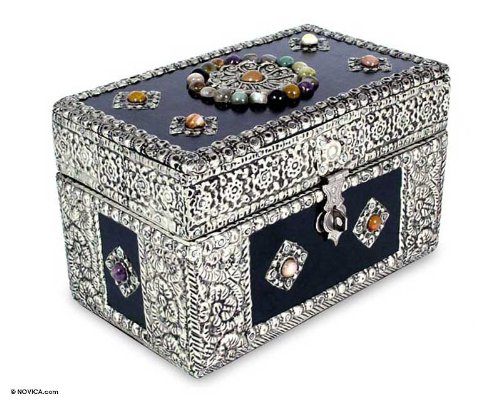-. Binding : Kitchen -. Brand : NOVICA -. Color : Metallic -. EAN : 0808773053113 -. Feature : Size: 4.3" H x 7" W x 4.3" D / Authentic: an original NOVICA fair trade product in association with National Geographic. / Certified: comes with an official NOVICA Story Card certifying quality & authenticity. / Exceptional Artisan Quality by Khalid Ali - crafted with care to be treasured for years to come. / Product Info: Nickel plated brass and glass on mango wood -. Label : NOVICA -. Manufacturer : NOVICA -. Model : 109753 -. MPN : 109753 -. PackageQuantity : 1 -. PartNumber : 109753 -. ProductGroup : Home -. ProductTypeName : HOME -. Publisher : NOVICA -. Studio : NOVICA -. Title : NOVICA Repousse Brass Jewelry Box, Metallic 'Treasure Chest' -. UPC : 808773053113