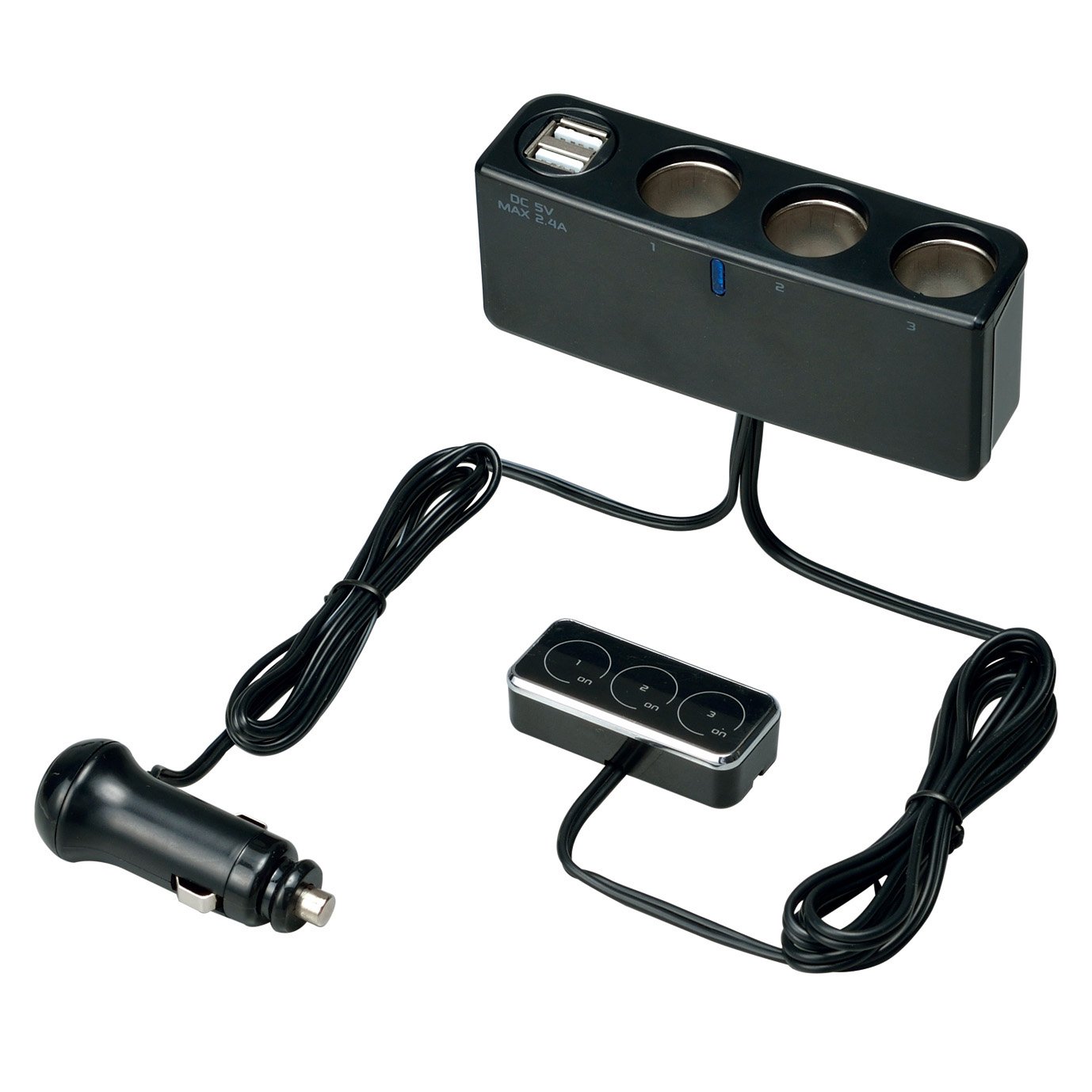 Seiwa F256 Two USB + 3 Cigarette Lighter Port Socket Adapter with Touch Button