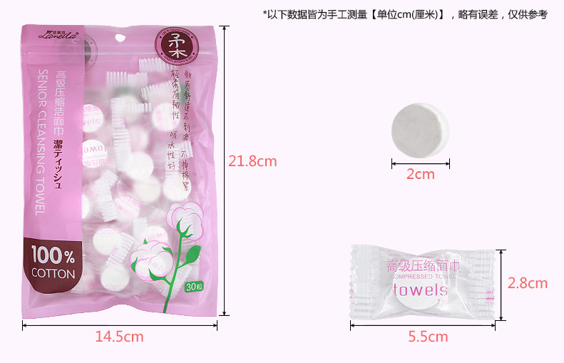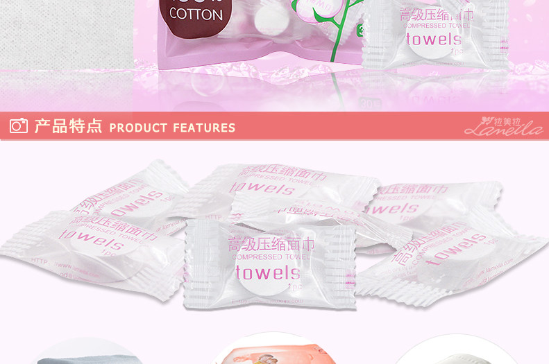 拉美拉30粒 压缩毛巾 一次性毛巾便携式迷你洁面巾洗脸巾旅行居家