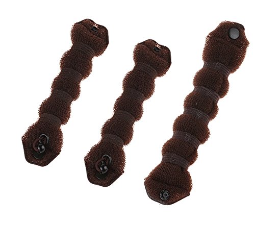 Set of 3 Magic Hair Styling Styler Hot Hair Donut Bun Ring Styler Maker (1 large+2 small) (1 large+2 small) (Brown)