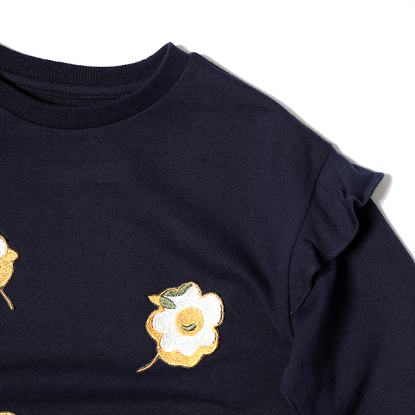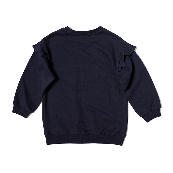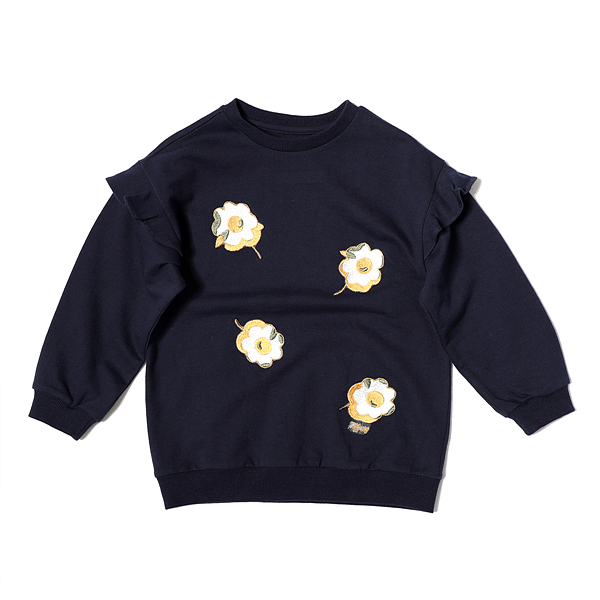 소재-겉감 : 면 100 배색 : 면 95 폴리우레탄 5 색상-네이비 사이즈-110,120,130,145,155,165상세설명-어깨에 프릴단을 포인트로 준 롱 맨투맨티로 제깅스나 체크 스커트 등에 코디하여 발랄하게 연출 가능한 아이템입니다.