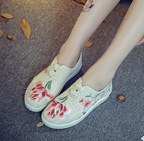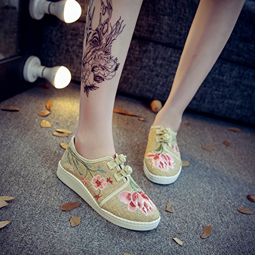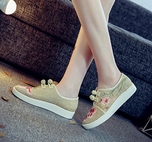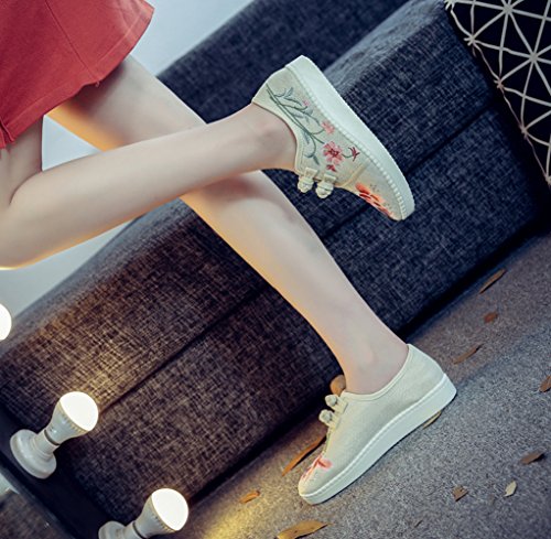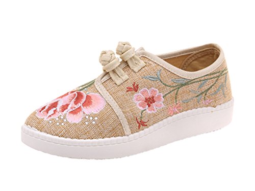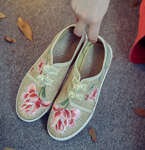 (AvaCostume)/Women's/Loafers Slip-Ons/DIRECT FROM USA/AvaCostume Womens Country Style Jasmine Embroidery Linen Loafer Shoes