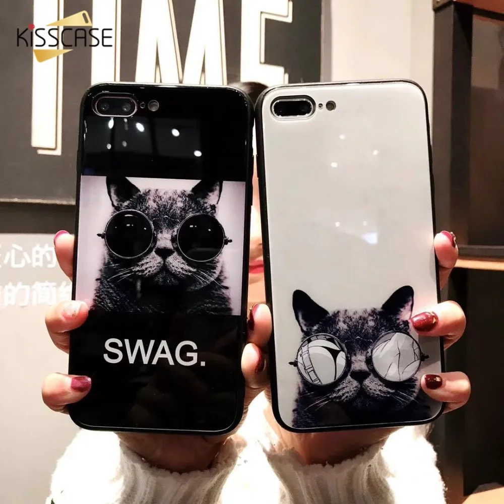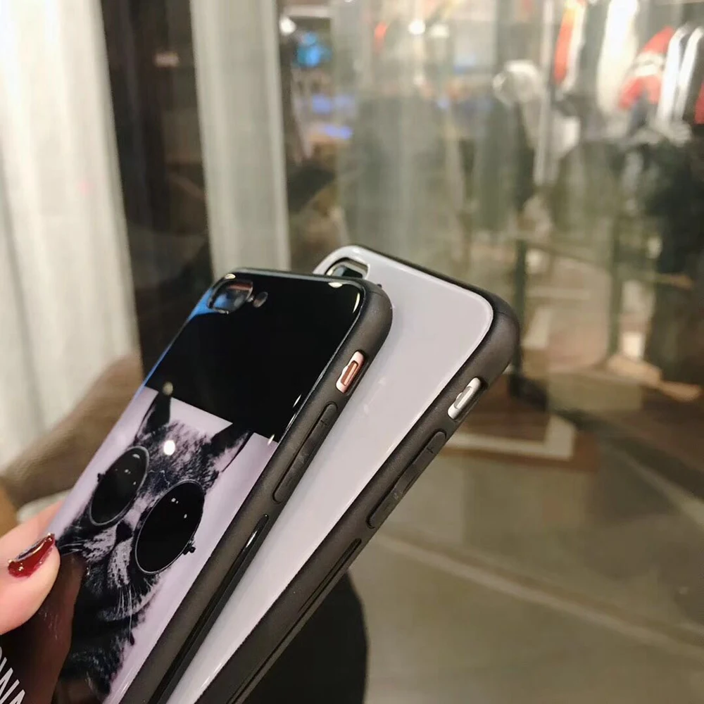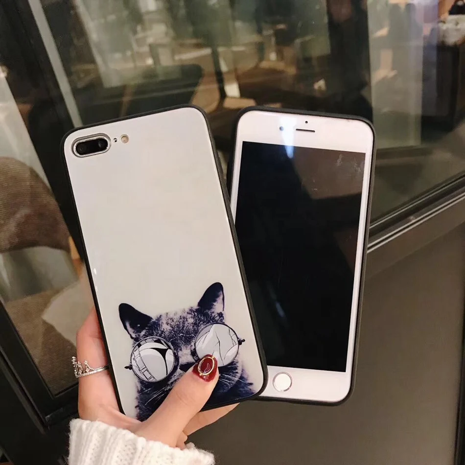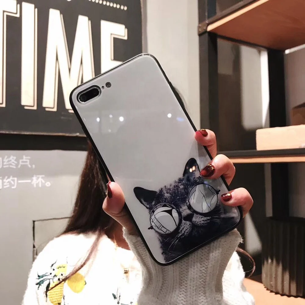 Features:Cute Sunglasses Cat Kitty Patterned Tempered Glass Case For iPhone 7 8