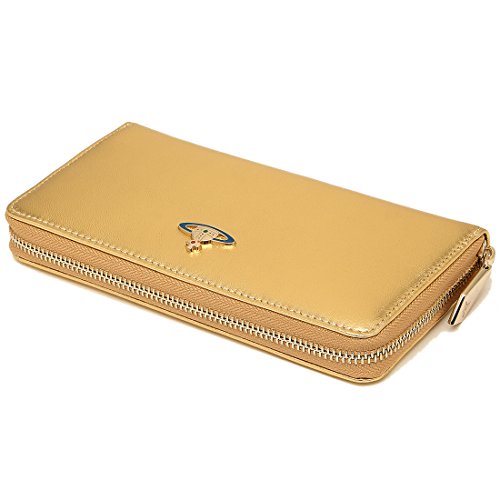 -. Feature : 【カラー】GOLD / 【サイズ】約横19cm×縦10cm×厚み2.5cm、 / 【素材】レザー / 【仕様】開閉種別:ラウンドファスナー、内部様式:ファスナー式小銭入れ×1、札入れ×3、オープンポケット×2、カードポケット×12、外部様式:、その他:、重量:約230g / 【付属品】箱