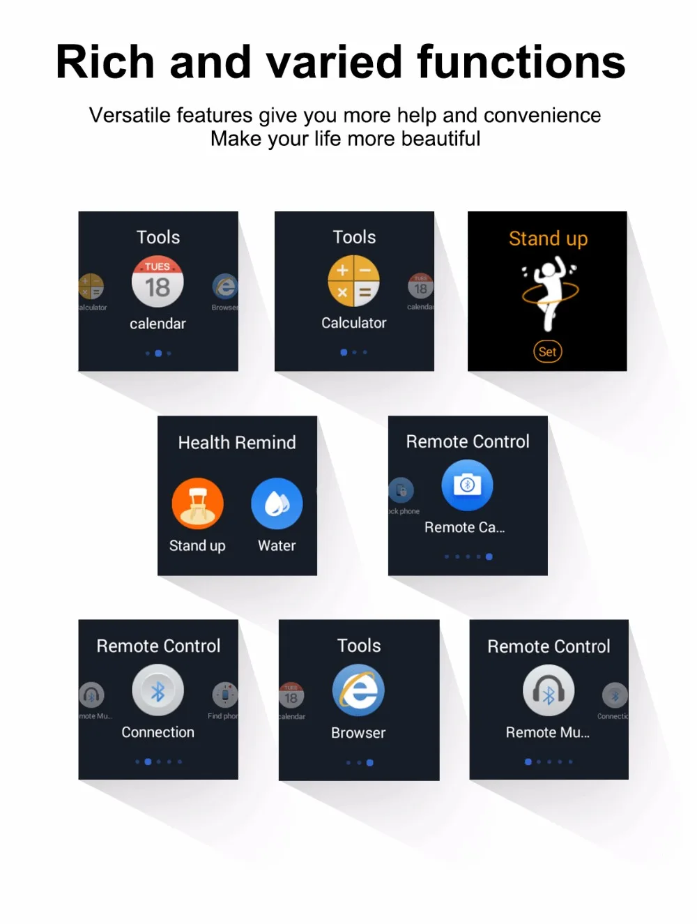 Function:Week,Altitude Meter,Dial Call,24 hour instruction,Answer Call,Passometer,Mood Tracker,Phase of the Moon,Fitness Tracker,Remote Control,Heart Rate Tracker,Push Message,Message Reminder,Alarm Clock,World Time,Interactive Music,Call Reminder,Calendar,Power Reserve