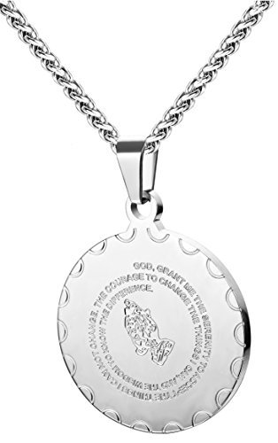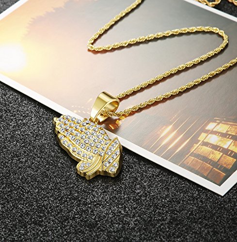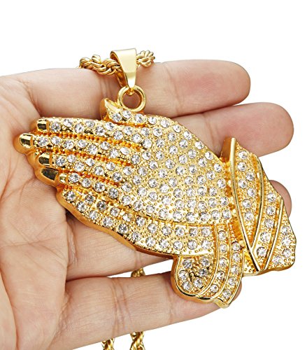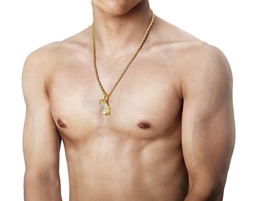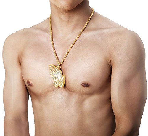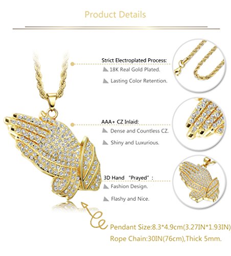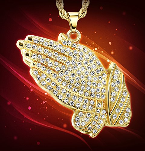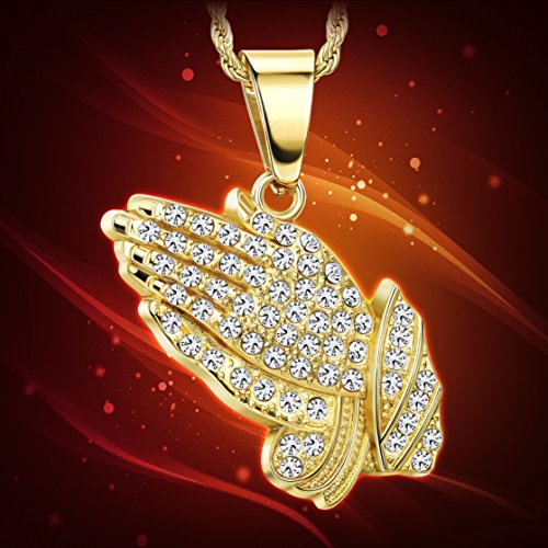 -. Title : JOERICA Prayer Hand Necklace for Men "God Bless You" Hand Pendant CZ Inlay With Rope Chain 30''