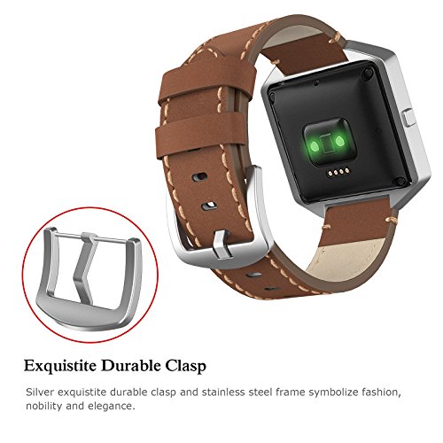 - Perfect genuine leather band with metal frame fit for Fitbit Blaze (Tracker is NOT included), small size fits for 5"-7.1" wrist, large size fits for 6.2"-8.2" wirst.