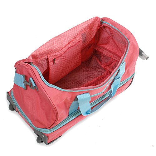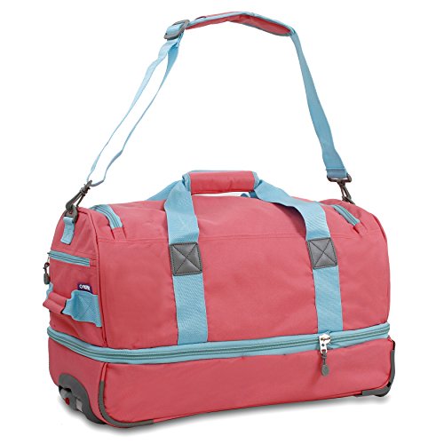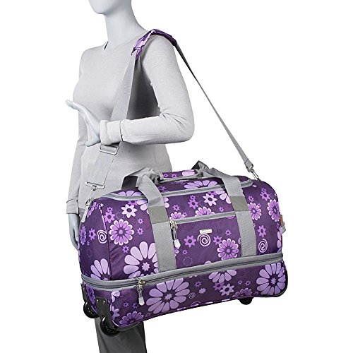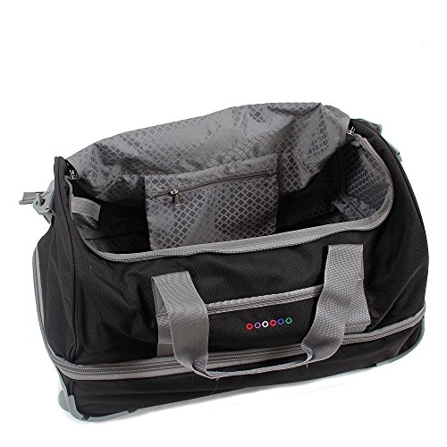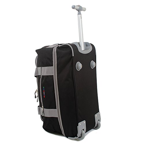 -. Binding : Apparel -. Brand : J World New York -. Department : unisex-adult -. Feature : Recessed three stage locking handle with push button / Padded adjustable and detachable shoulder straps / Meets carry-on size requirements. Can fit under the seat and in the overhead compartment / Hoop and loop padded handle wrap / Soft and noiseless wheels -. Label : J World New York -. Manufacturer : J World New York -. MPN : RFS-22 BLACK -. NumberOfItems : 1 -. PackageQuantity : 1 -. PartNumber : RFS-22 BLACK -. ProductGroup : Apparel -. ProductTypeName : LAGE -. Publisher : J World New York -. Studio : J World New York -. Title : J World New York Stadium Rolling Duffel Bag