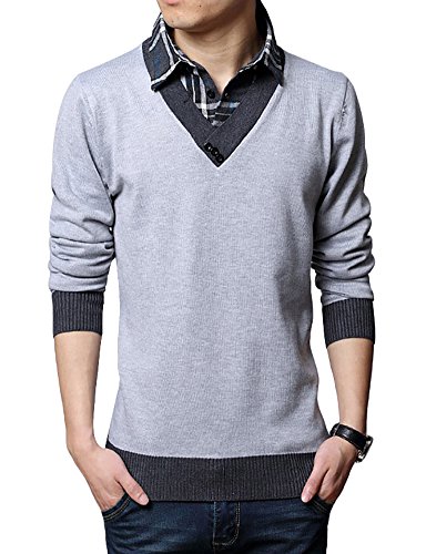 -. Feature : オシャレな重ね着風襟付きセーターです。 / チェックのシャツとVネックセータを重ね着したようなデザイン。 / 着ぶれしないスマートな着こなし.着回し力抜群なキレカジアイテム! / Mサイズ:肩幅/43cm 胸囲/50cm 着丈/67cm ; Lサイズ:肩幅/44cm 胸囲/52cm 着丈/69cm / XLサイズ:肩幅/45cm 胸囲/54cm 着丈/71cm ; XXLサイズ:肩幅/46cm 胸囲/56cm 着丈/73cm