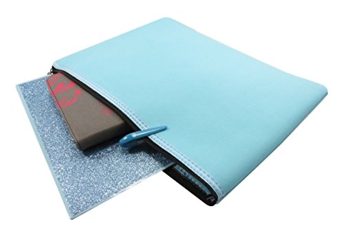 THE SPECIFICS: Set of 2 zipper bags made of polyester measuring 13" x 10" (large); 11.25" x 8.75" (medium) in light blue. Tablet, highlighter, and folder are for demonstration purposes only and not included.