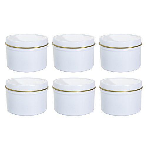 4 oz White Metal Steel Tin Container with Tight Sealed Slip Cover (6 Pack)