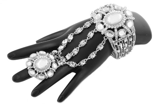 - Title : Silver with Clear Classy and Elegant Style Adjustable Bangle Finger Ring and Hand Chain Bracelet