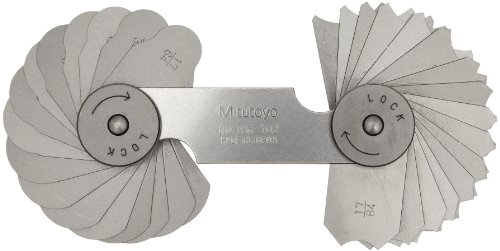 Mitutoyo 186-102, Radius Gage Set, 16 Pairs of Leaves, 17/64" to 1/2" by 64ths