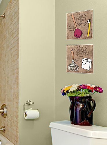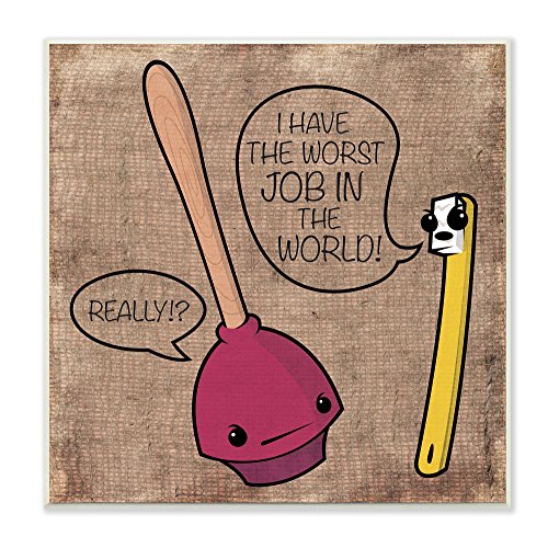 Stupell Home Décor Toothbrush and Plunger Cartoon Humor Bath Wall Plaque Art, 12 x 0.5 x 12, Proudly Made in USA