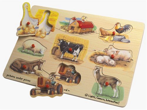 -. Title : Wooden Farm 9-piece Peg Puzzle