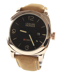 Retro Men Military Style Round Dial Scrub Leather Band Sports Quartz Watch