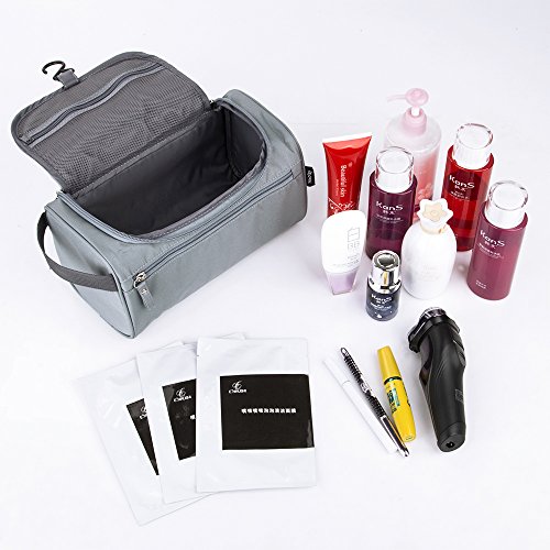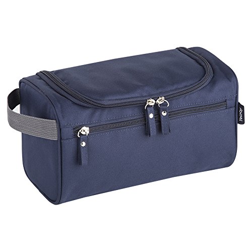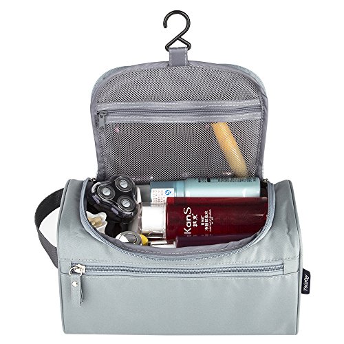 -. Feature : COMPACT DESIGN: This bag has 1 main compartment, 1 inner mesh zippered compartment, and 1 outside zippered compartment. The concise apperance and interlayer classification design is easy for packing your toiletry accessories. / LARGE CAPACITY: The size of the bag is 9.8 x 5.9 x 5.5 inches, which will allow you to hold all your travel toiletries like toothbrush, toothpaste, facial cleanser, shaver or razor, shampoo and everything you need. / WATER-RESISTANT: Water-resistant treatment fabric will leave you far away from worrying about water while using the toiletry bag. / ANTIBACTERIAL: Advocate material and linning using antibacterial coating processing, the waterproof and breathable fabric can prevent bacteria and peculiar smell after long time using. / CONVENIENT USAGE: Fine and durable zips for easy, smooth opening and closing; Simple and durable handle is for convenient for taking along; Small and durable hook is convenient for hanging the toiletry bag everywhere for space saving.