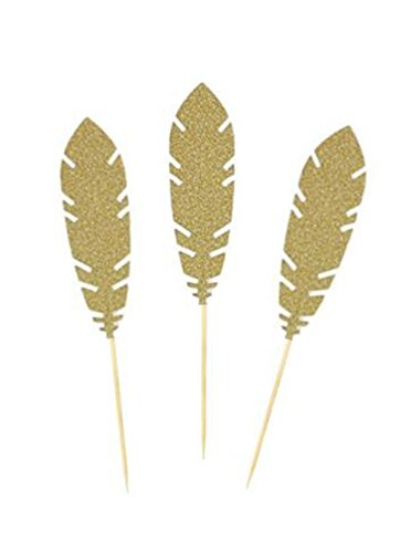 24 Pack Glitter Gold Feather Cupcake Toppers