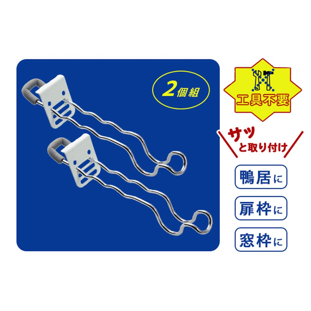 サイズ:27cm ネジ・釘・工具不要で鴨居や窓枠などにワンタッチで付け外しができ、室内干しが簡単 鴨居の幅に合わせて2~4.5cmまで3段階調節が可能。【耐荷重】6kg/2個 従来品より約2.5cm長くなった全長約27cmのロングサイズなので洗濯物が密着しない 2個セットなので、2個設置して物干し竿を渡すこともできる(パイプ径32mmまで) 春の花粉の時期や台風、秋の長雨や雪の日はもちろん、粉じん対策にも年中役立つ サイズ:約縦27×横5×高さ6cm