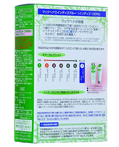 髪・地肌を傷めずカラーリングできる、天然植物成分100%のマックヘナパウダー、人気のナチュラルダークブラウンのパウダー2インディゴ100%の別売品です。不純物を含まない高品質原料のみ使用しています。主として、ヘナの赤味抑えに使用するほか、天然成分なのに発色の安定度が抜群なので、ナチュラルオレンジなど他のマックヘナシリーズとブレンドしてお客様独自の色を実現しています。