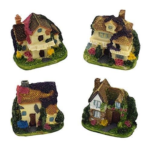 Ewinsun 4 Pieces Miniature Ornaments Fairy Garden House Set for Pot Plant Dollhouse Decoration Kit