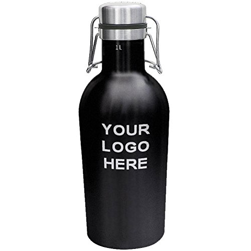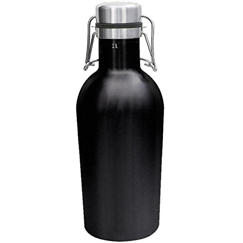 Kegco KC GR32DDW-BL Double Wall Beer Growler, 32 oz, Stainless Steel/Black Finish