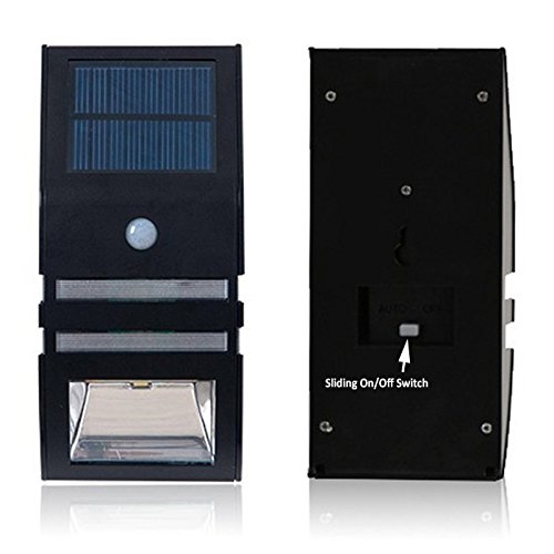 - BRIGHT LED SOLAR LIGHT featuring an infrared motion sensor activates when movement is detected within 16 feet after dusk