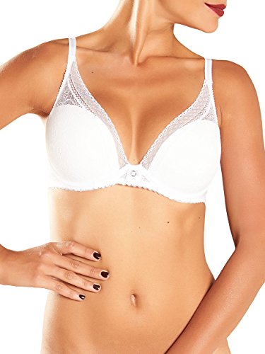 Sexy T-Shirt Schalen BH mit tiefem Ausschnitt, Variable Push-Up-Wirkung dank herausnehmbarer Schaumstoffkissen in Cup A und 70 B, Cups mit Spitze und Tull fur ein verfuhrerisches Dekollete, Trager auf der ganzen Lange verstellbar,